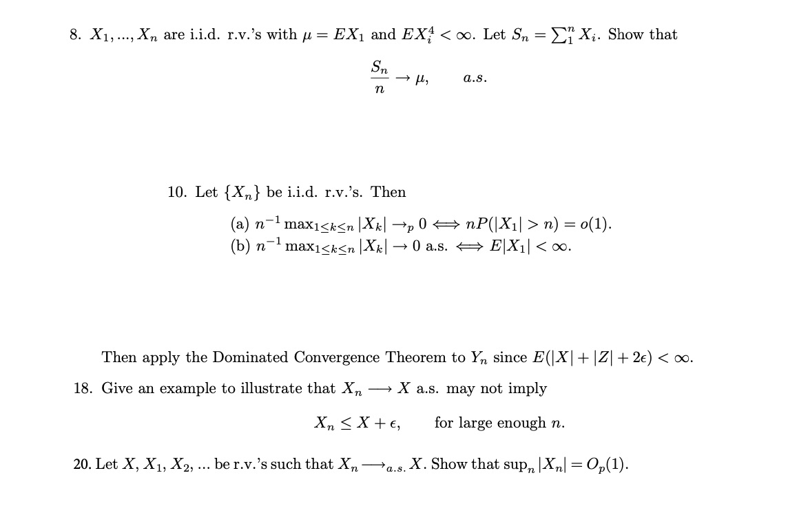8. X1,...,Xn are i.i.d. r.v.’s with μ = EX1 and EXi < ∞. Le...