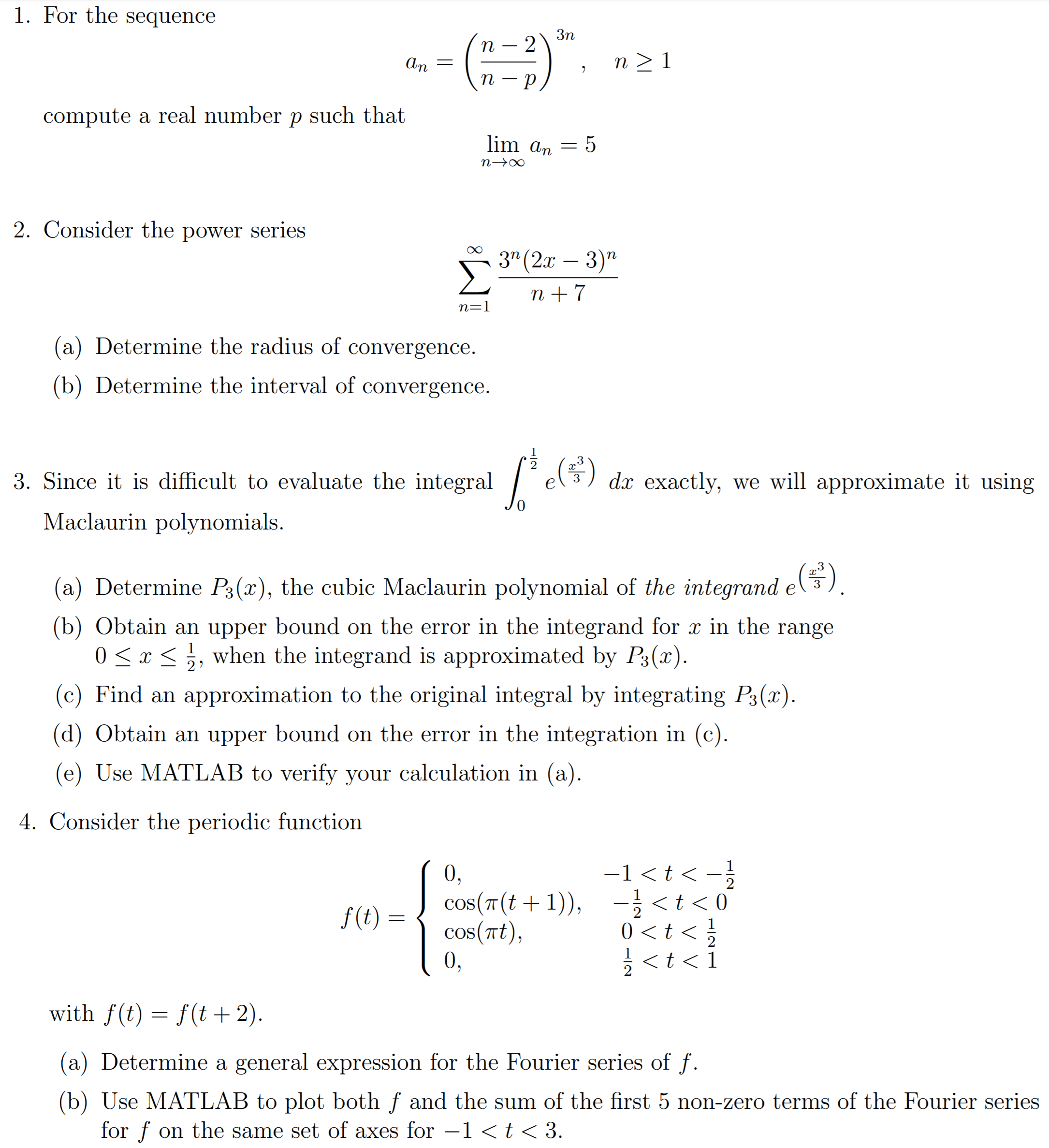 1. For the sequence 3n - 2 an = n - n > 1 , n p compute ...