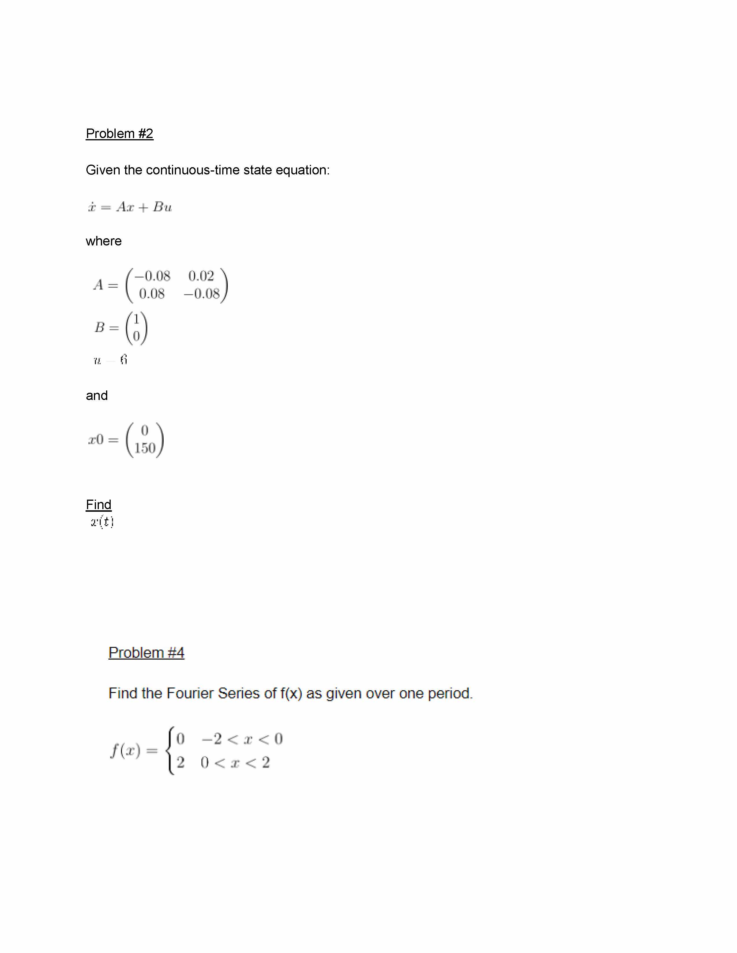 Problem #2 Given the continuous-time state equation: ...