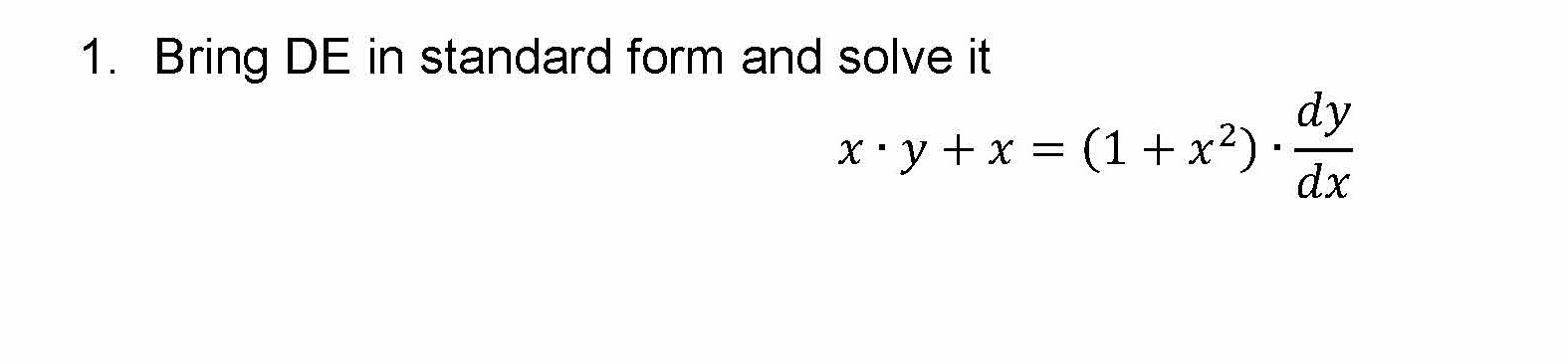 1. Bring DE in standard form and solve it x*y+x=(1+x2).dy = dx