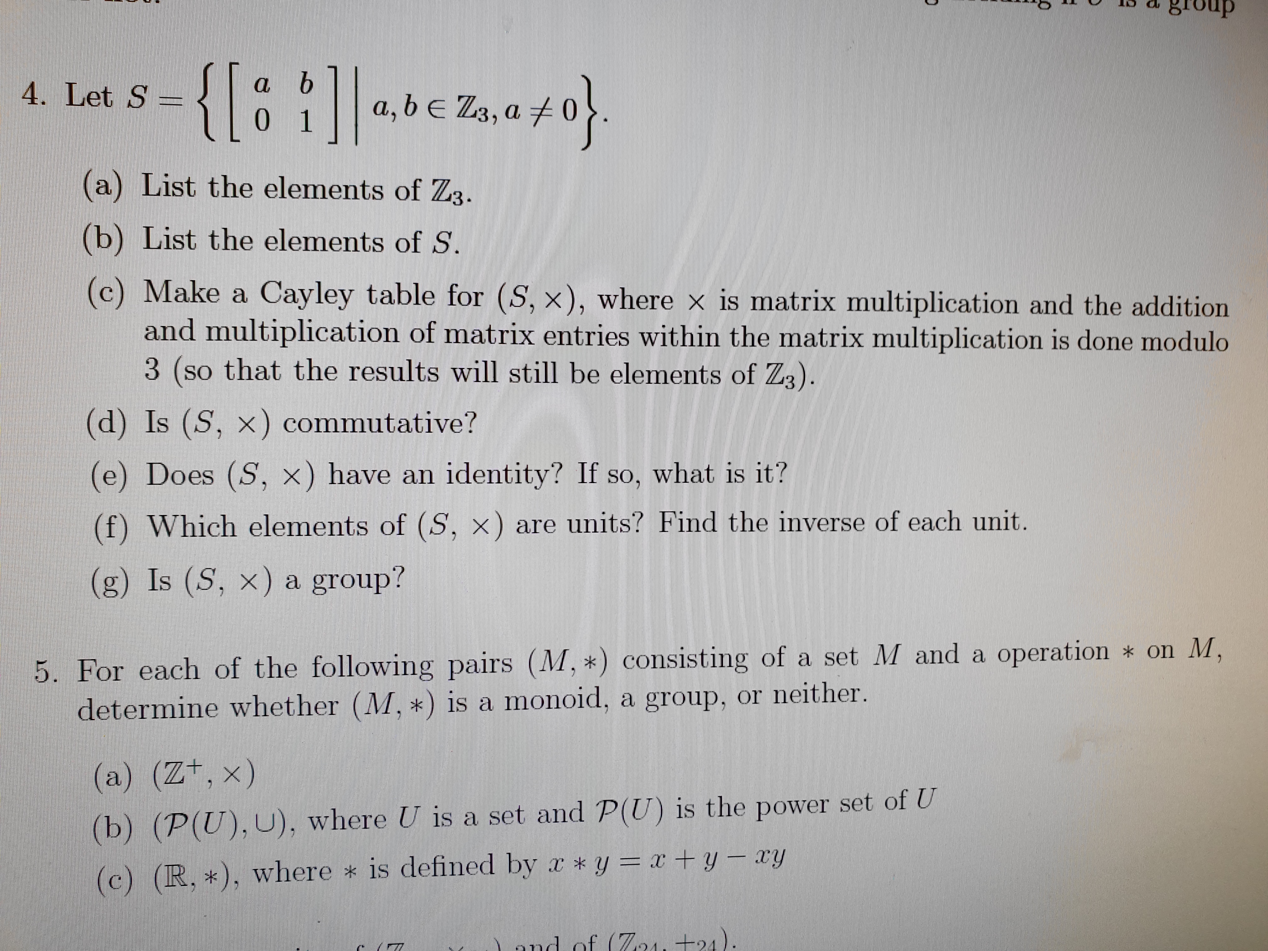 4. Let S a b 1 1 (a) List the elements of Z. (b) List the ele...
