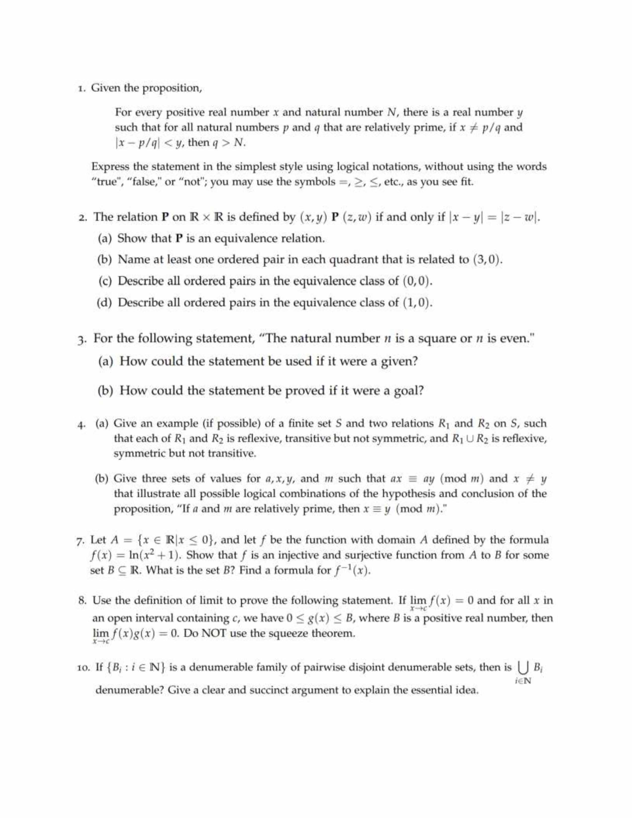 1. Given the proposition, For every positive real number x and nat...
