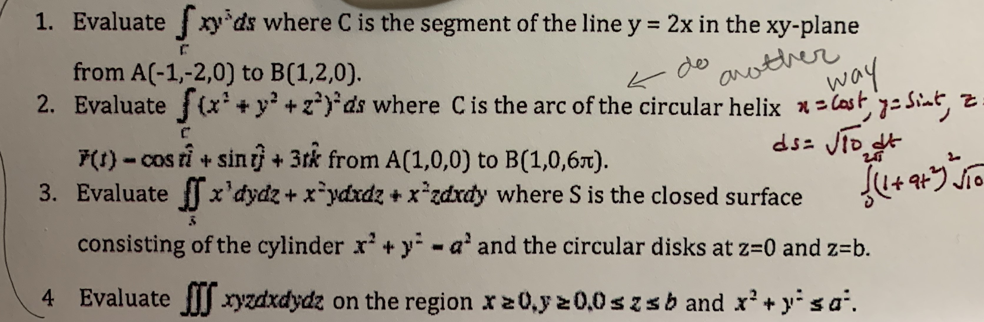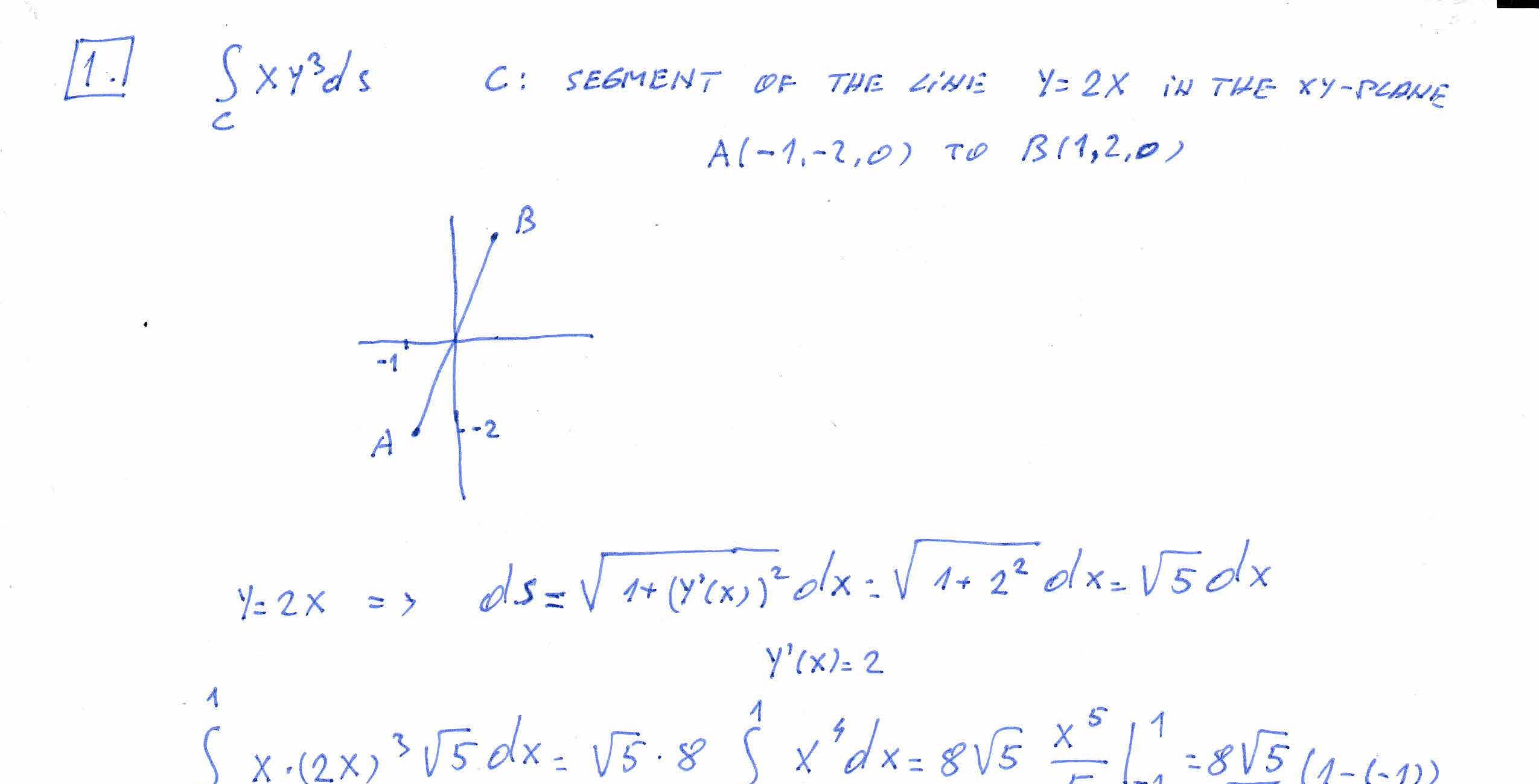 1. Evaluate Sxxds where C is the segment of the line y= 2x in the x...