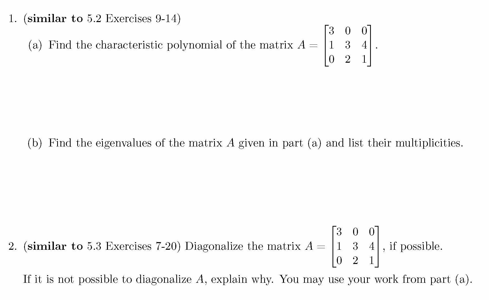 1. (similar to 5.2 Exercises 9-14) (a) Find the characteristic pol...