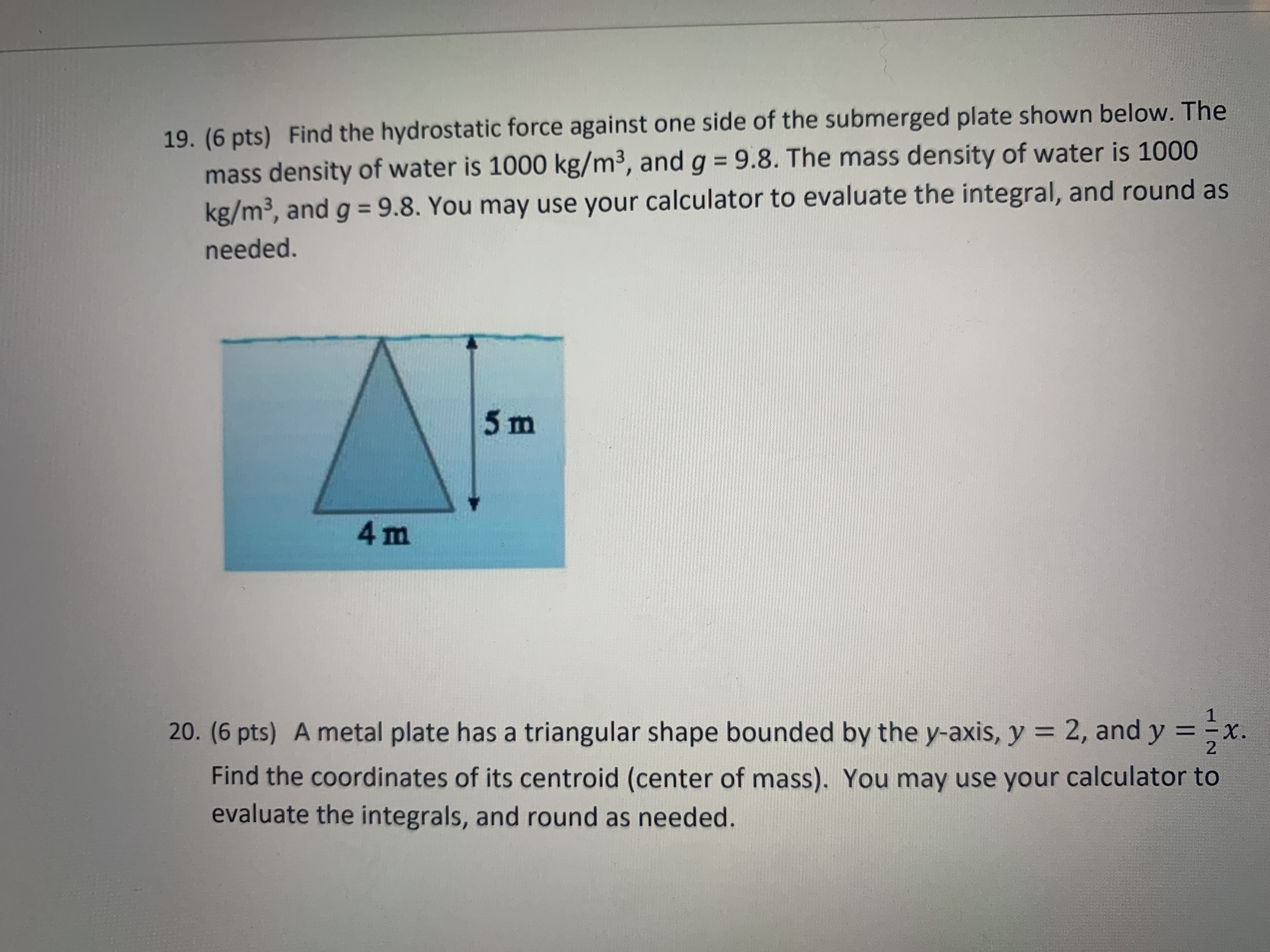 5 m Y 4 m 1 20. (6 pts) A metal plate has a triangular shape bo...