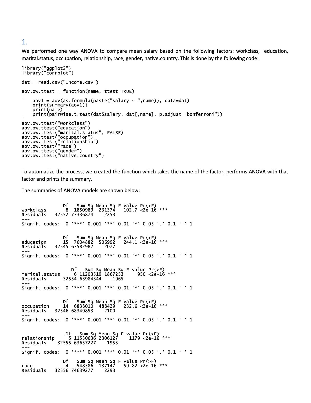 Use the posted Income.csv dataset and R-script and perform analysis...