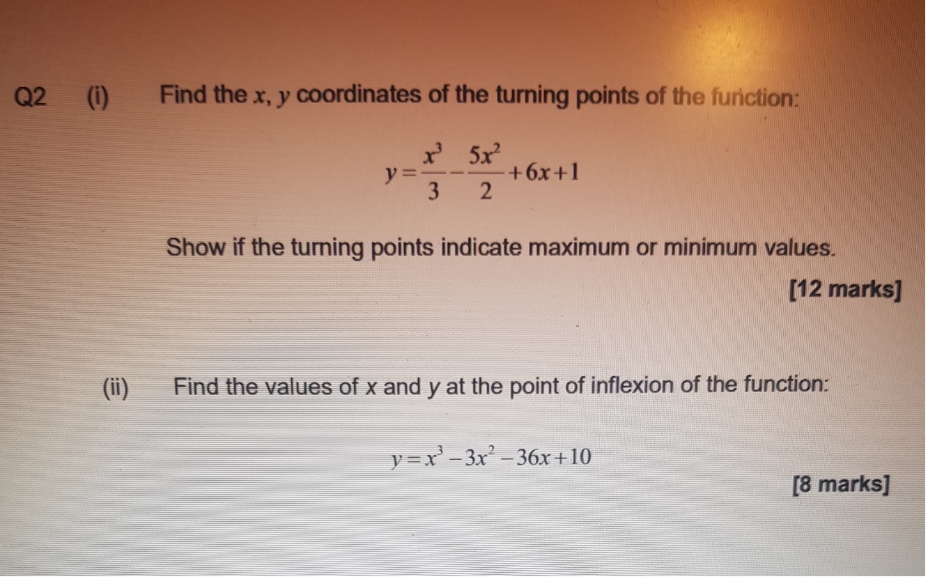 Q2 (i) Find the x, y coordinates of the turning points of the fun...