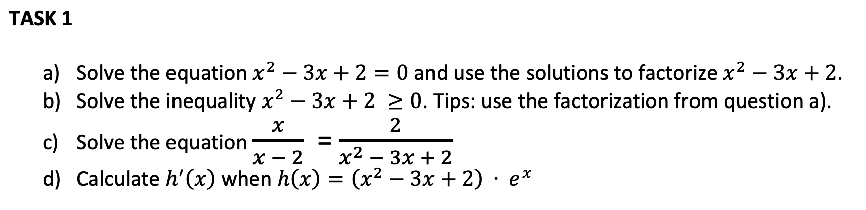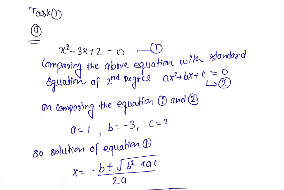 TASK 1 a) Solve the equation x2 - 3x + 2 = 0 and use the solutions...