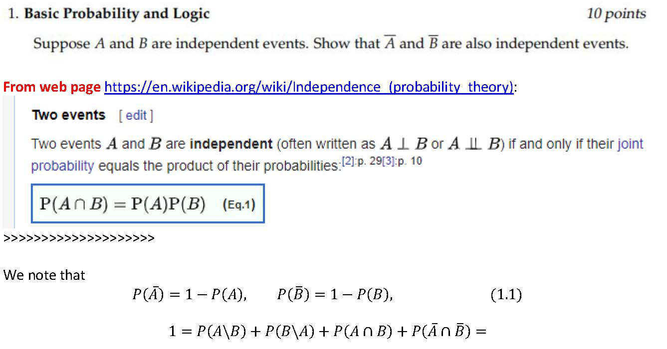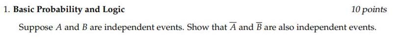 1. Basic Probability and Logic 10 points Suppose A and B are inde...