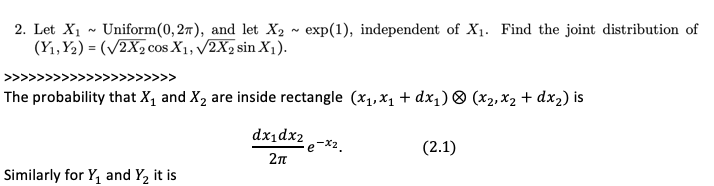 2. Let X1 ~ Uniform(0,27), and let X2 ~ exp(1), independent of X1. ...