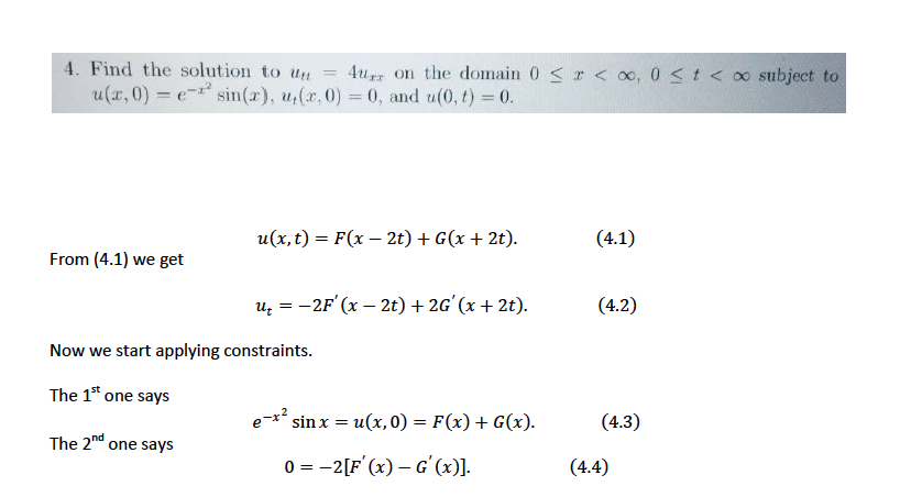 4. Find the solution to Uu = Auxx on the domain 0 < x < 00, 0...