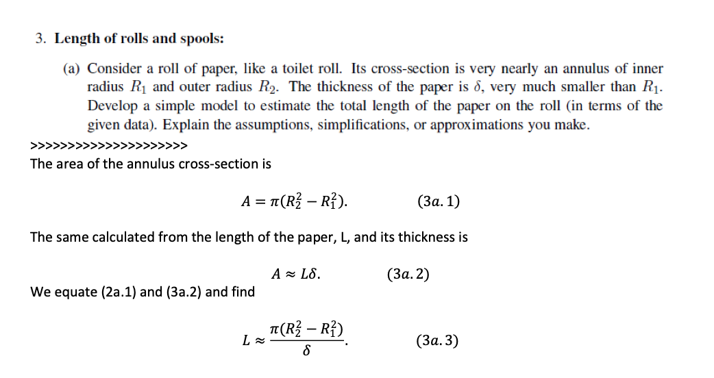3. Length of rolls and spools: (a) Consider a roll of paper, like...