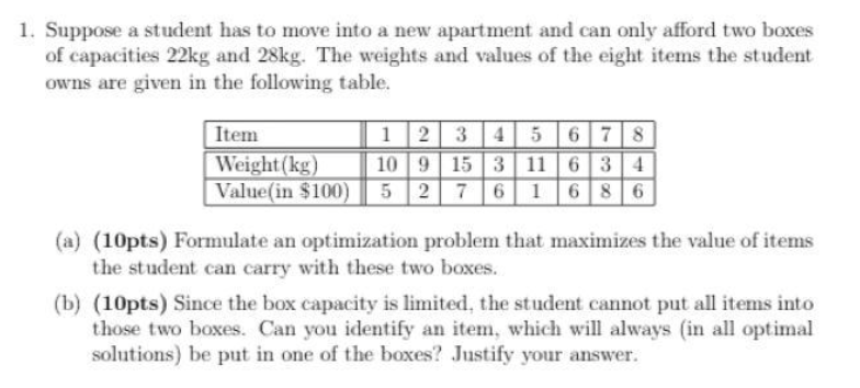 1. Suppose a student has to move into a new apartment and can only ...