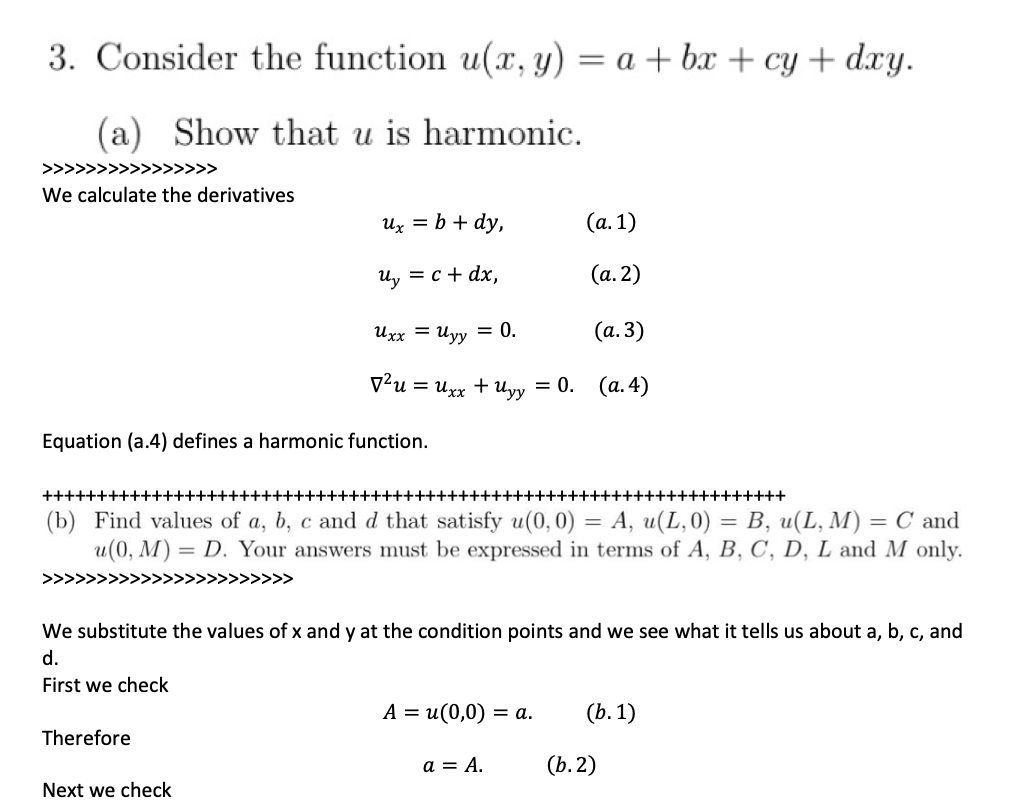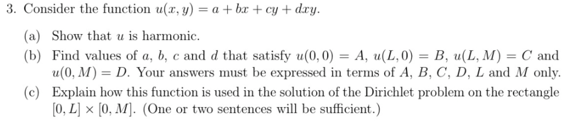 3. Consider the function u(x,y) = a + bx + cy + dxy. (a) Show that...