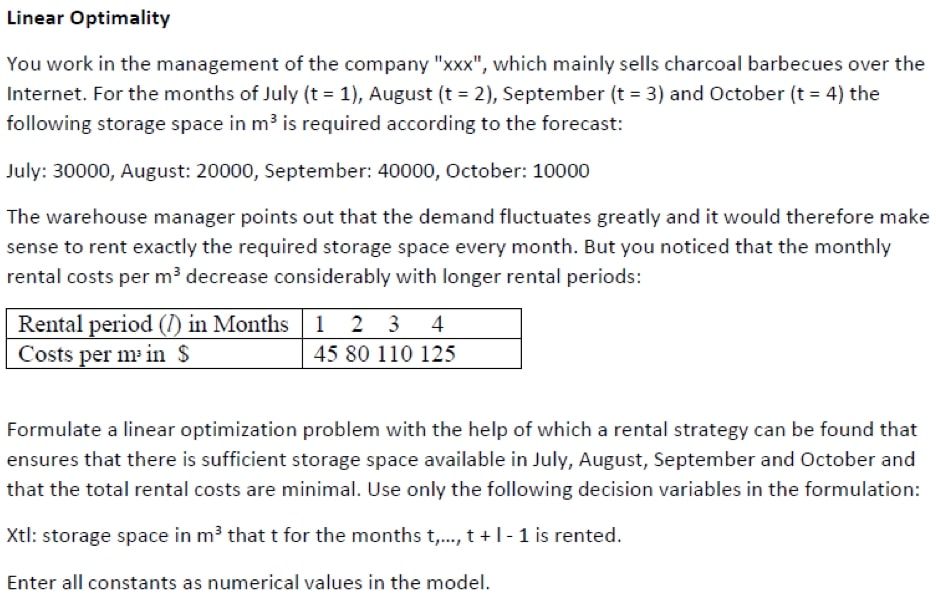 Linear Optimality You work in the management of the company "...