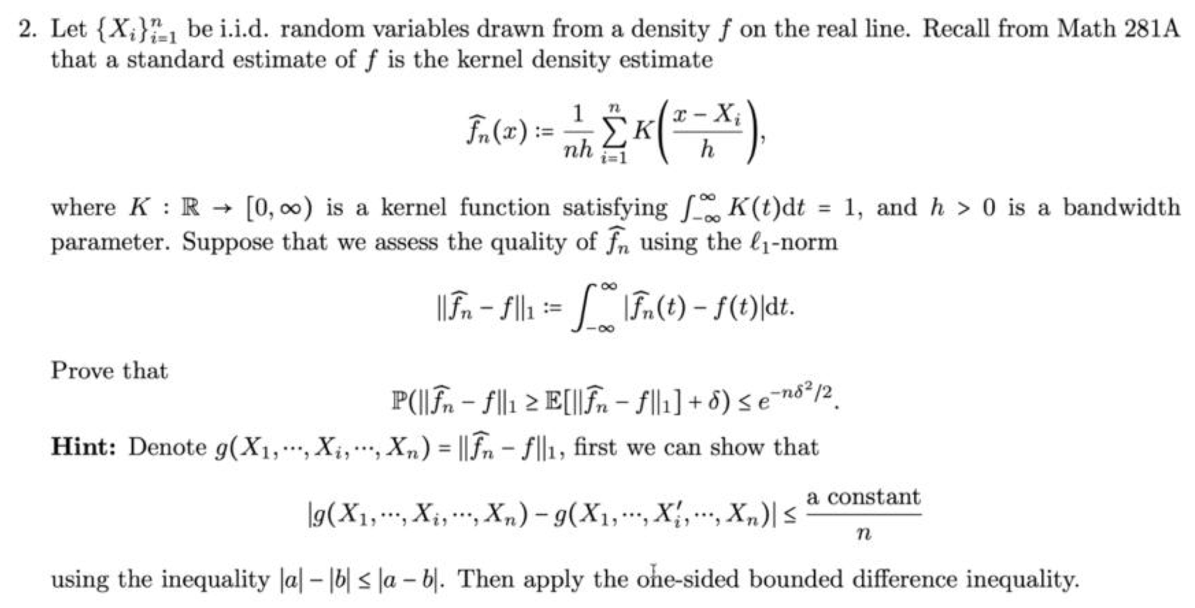 2. Let {XLL be i.i.d. random variables drawn from a density f on th...