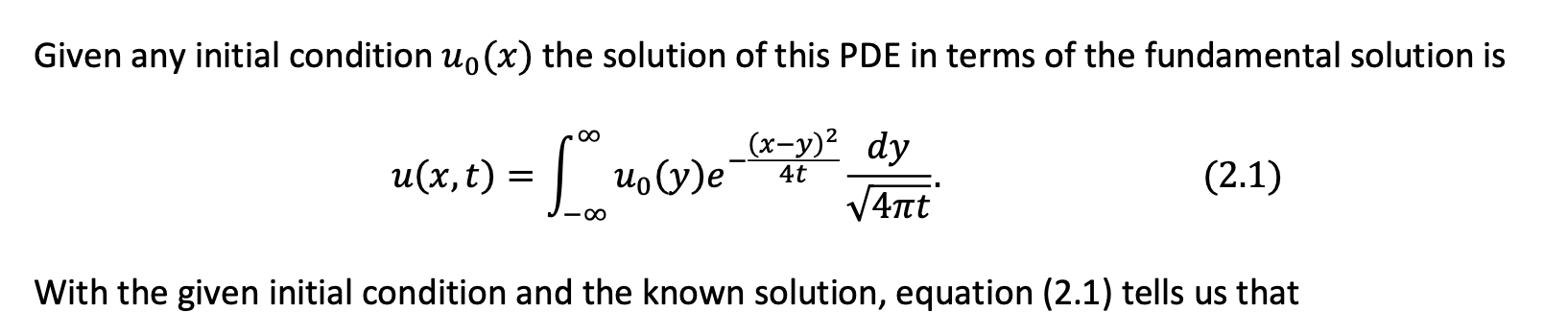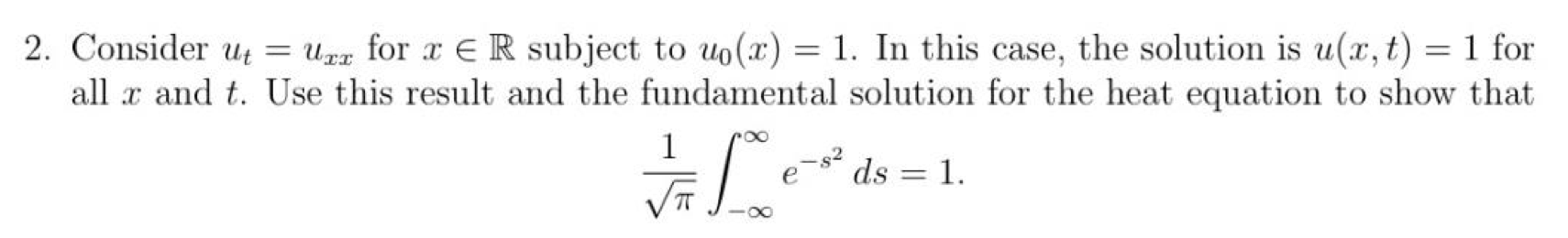 2. Consider Ut = Uxx for x € R subject to uo(x) = 1. In this case...