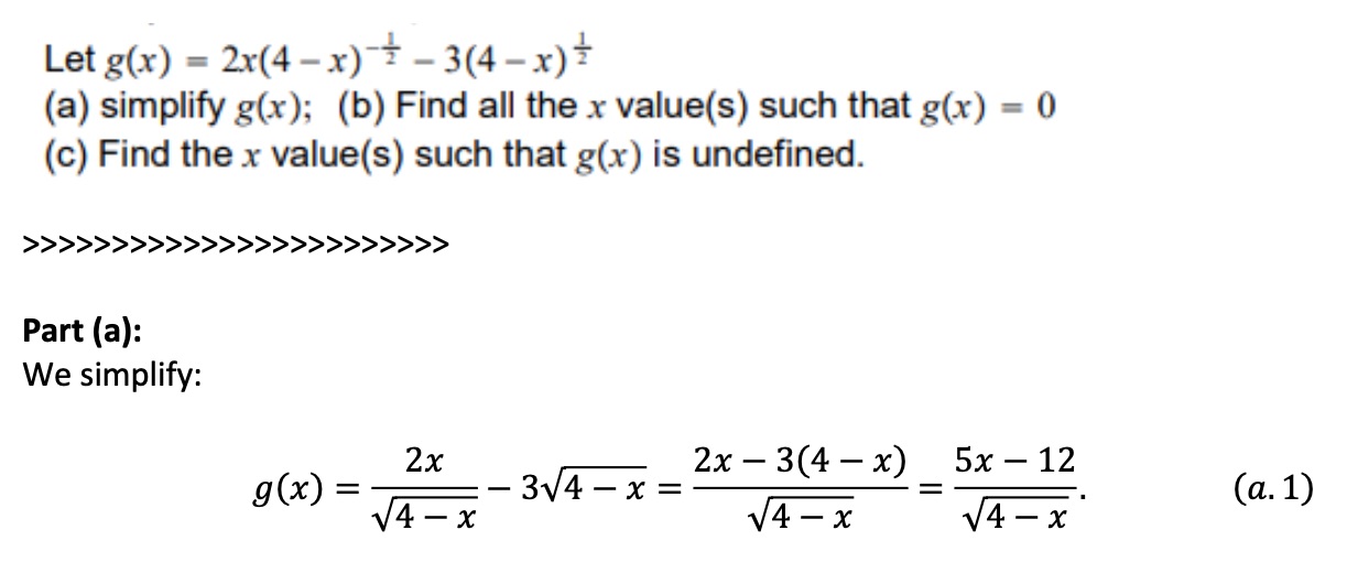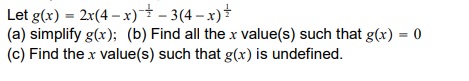 Let g(x) = 2x(4-x) + -3(4-x)+ - (a) simplify g(x); (b) Find all th...