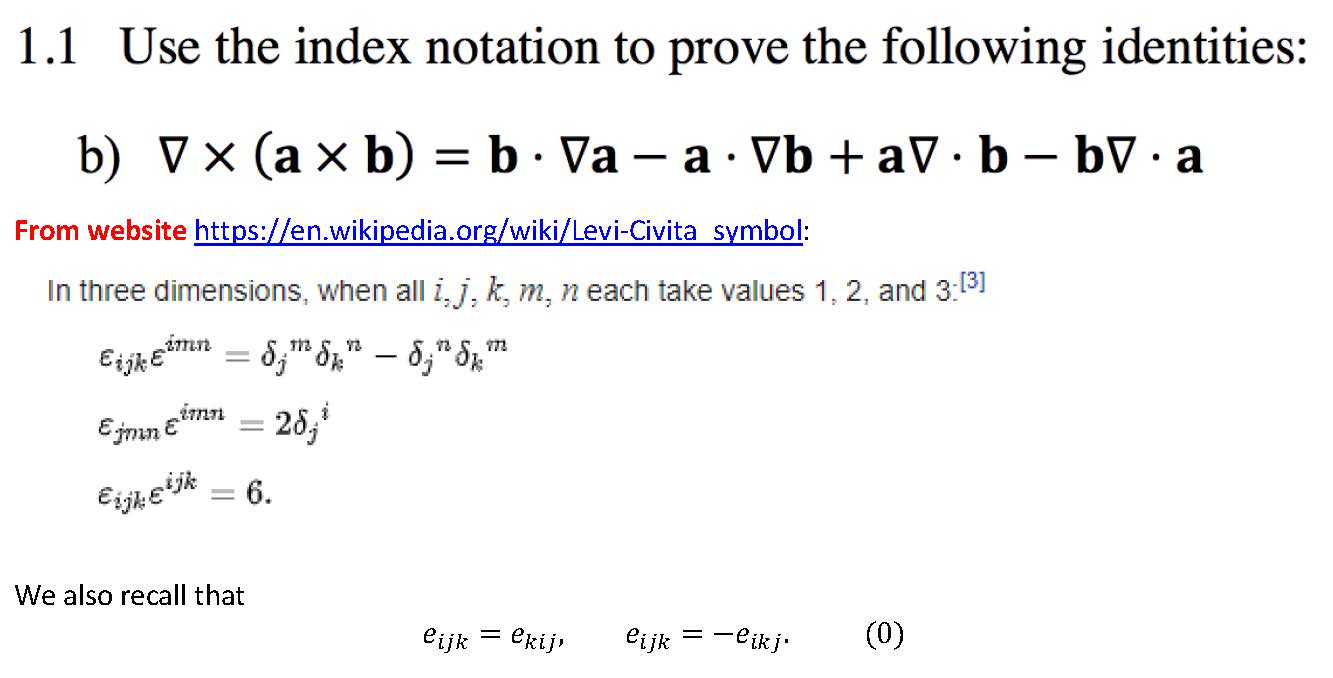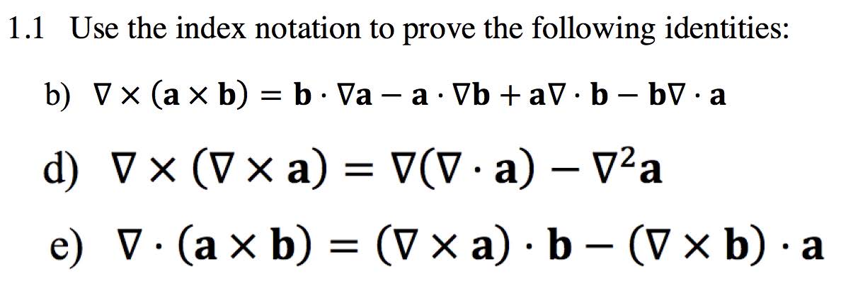 1.1 Use the index notation to prove the following identities: b) V...