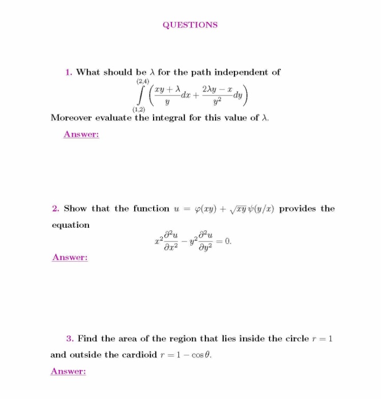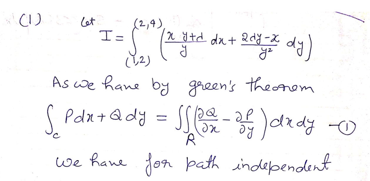 QUESTIONS 1. What should be λ for the path independent of (2,4)...
