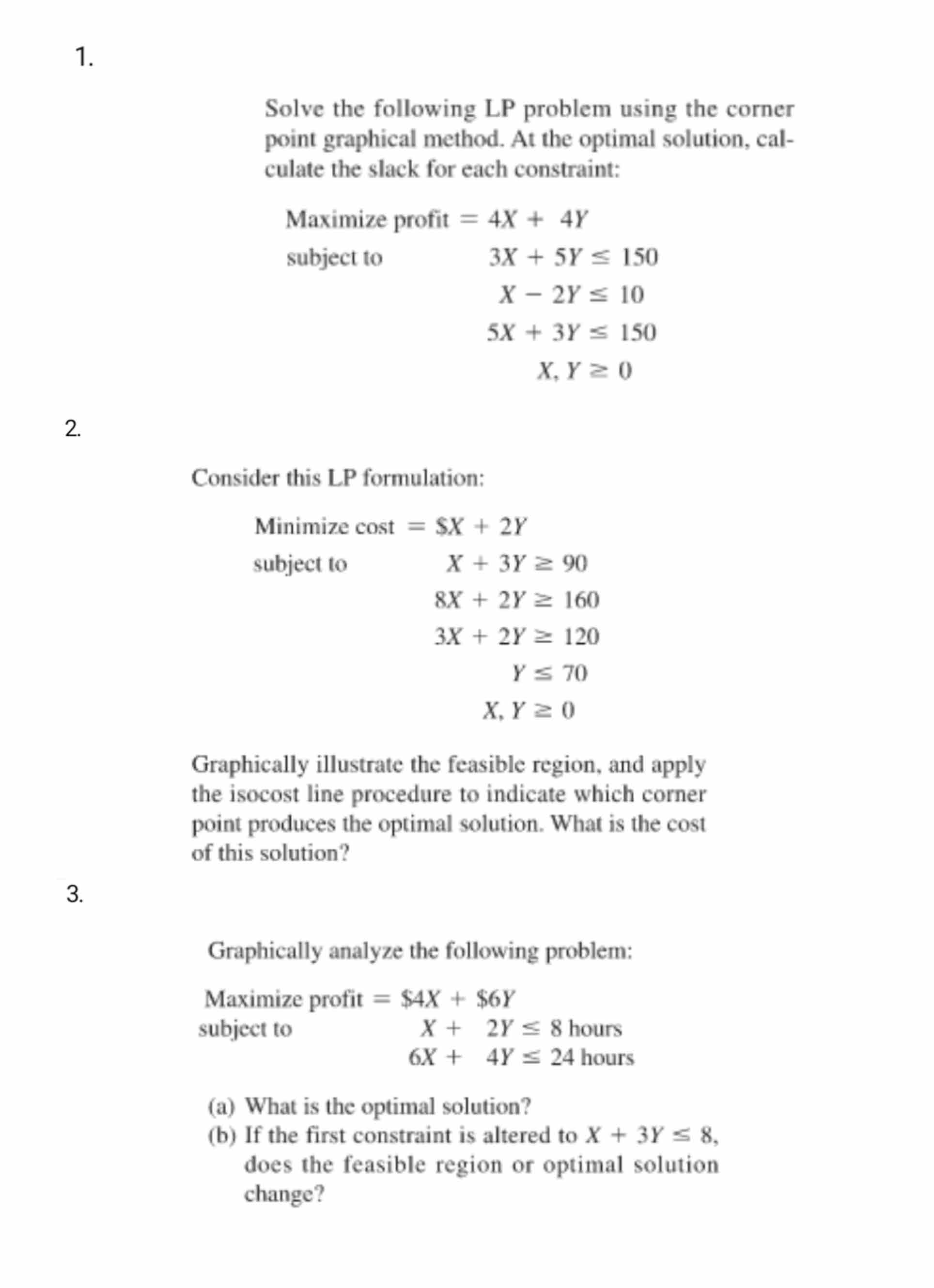 1. Solve the following LP problem using the corner point graphica...