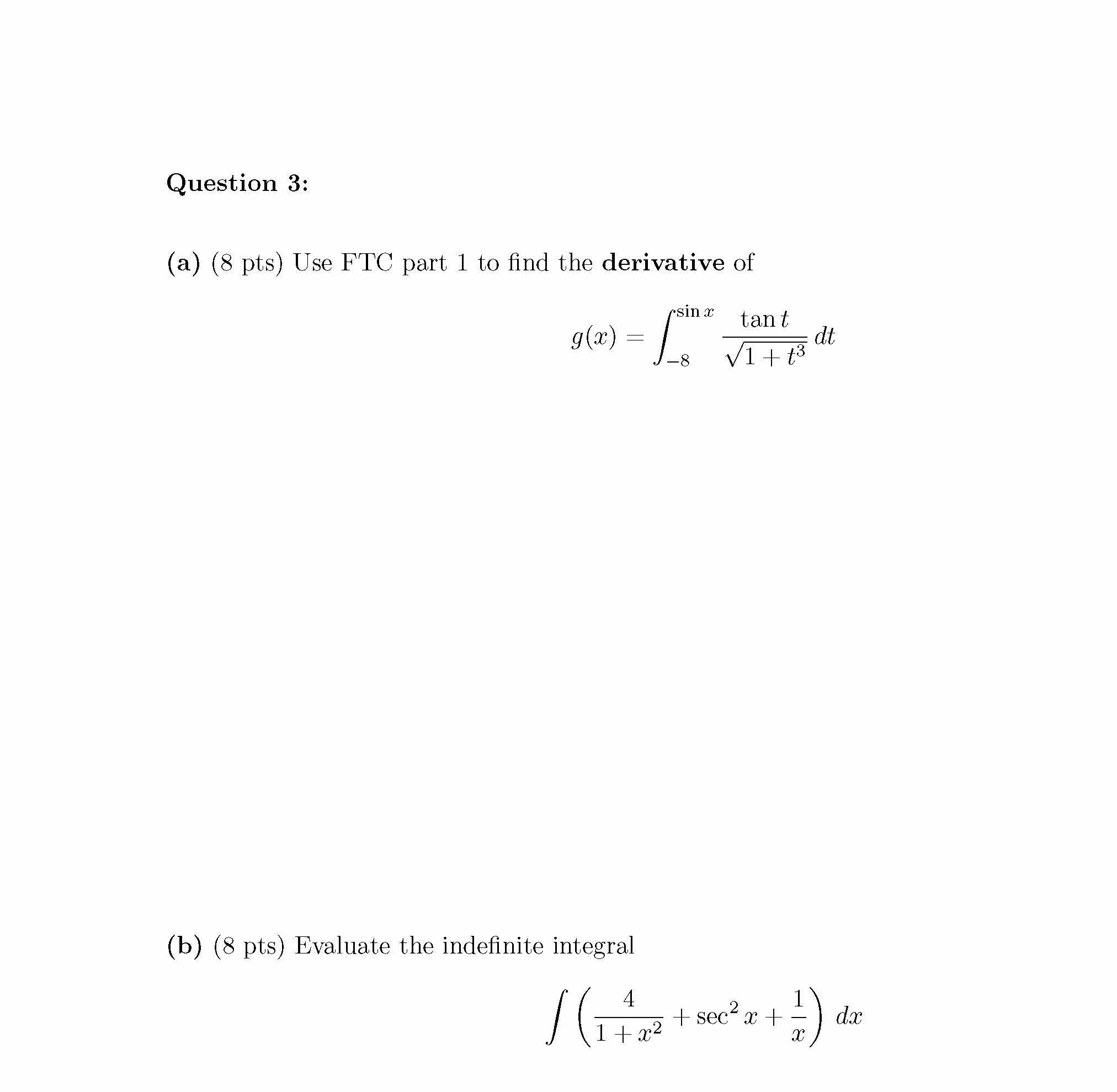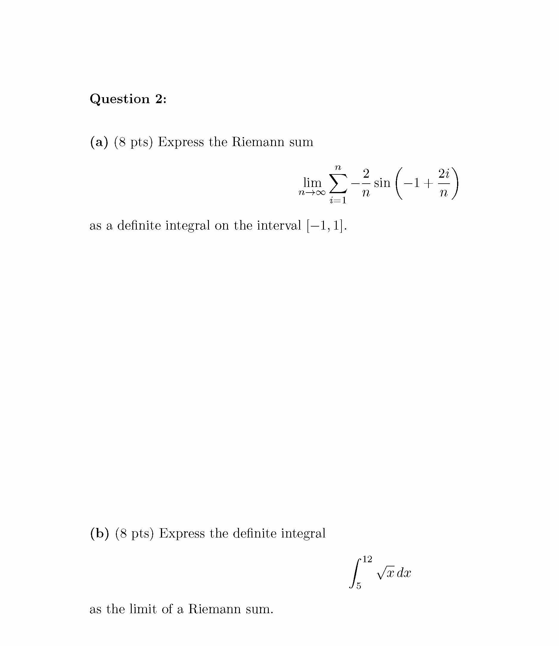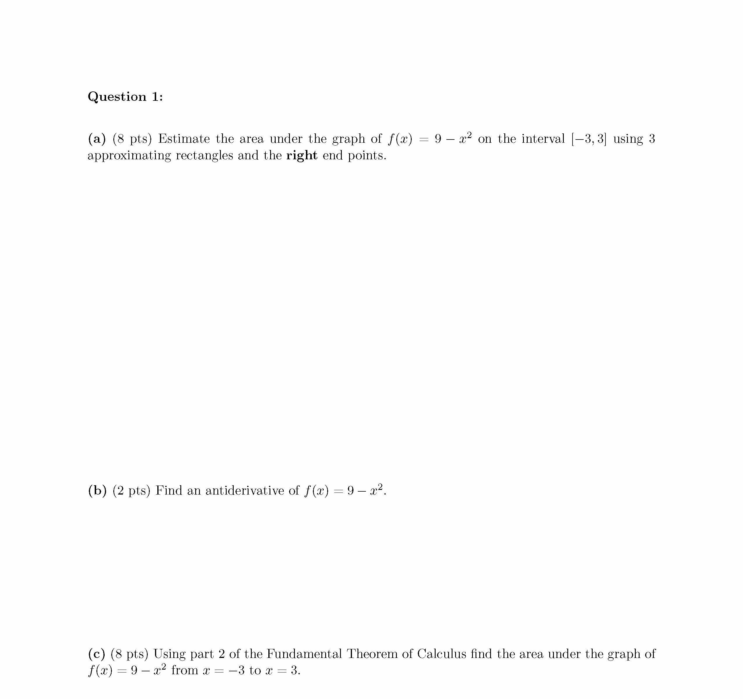 Question 1: (a) (8 pts) Estimate the area under the graph of f (x)...
