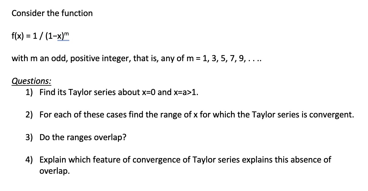 Consider the function f(x)=1/(1-x)m with m an odd, positive integ...