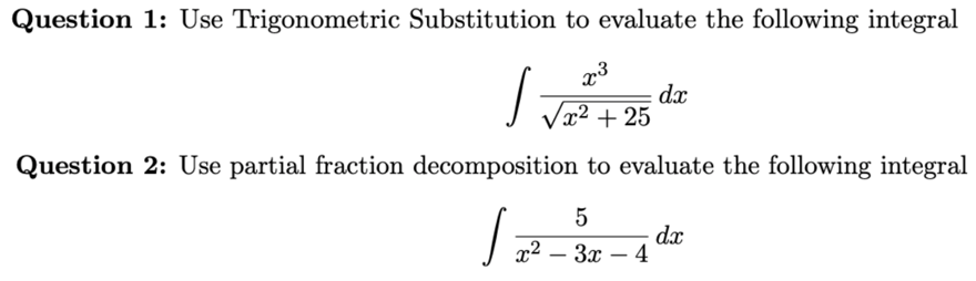 Question 1: Use Trigonometric Substitution to evaluate the followin...