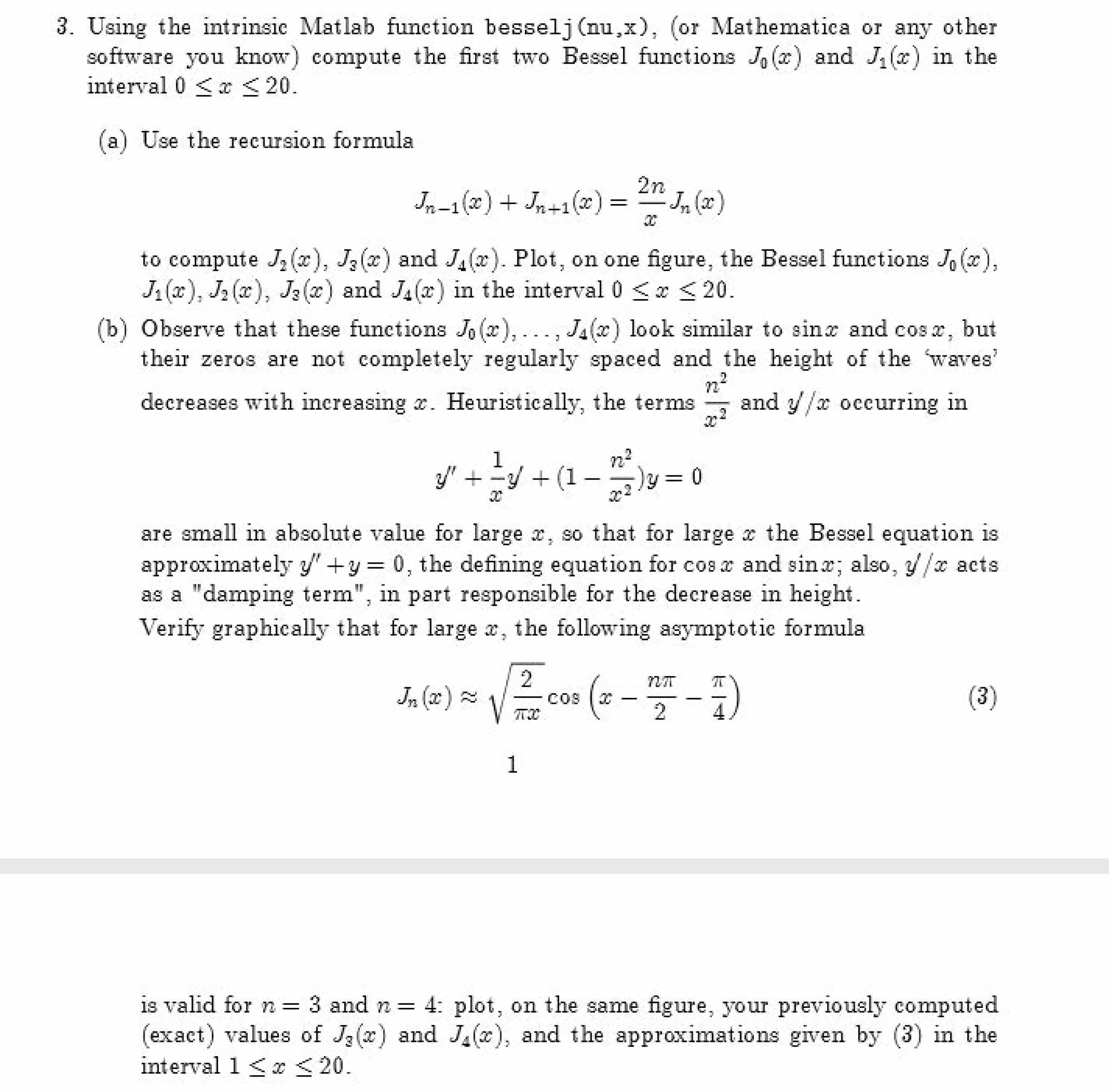 3. Using the intrinsic Matlab function besselj (nu,x), (or Mathemat...