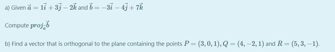 a) Given Compute projab b) Find a vector that is orthogonal to th...