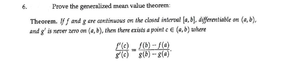 6. Prove the generalized mean value theorem: Theorem. If f and g...