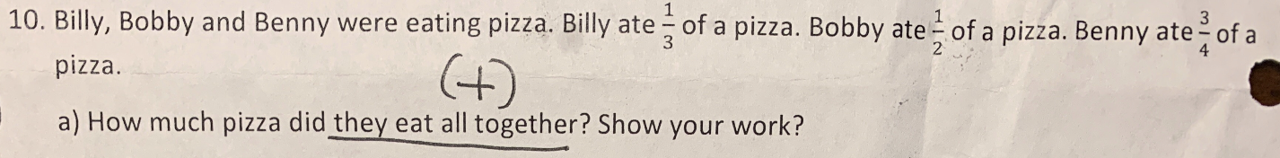 10. Billy, Bobby and Benny were eating pizza. Billy ate of a pizza...