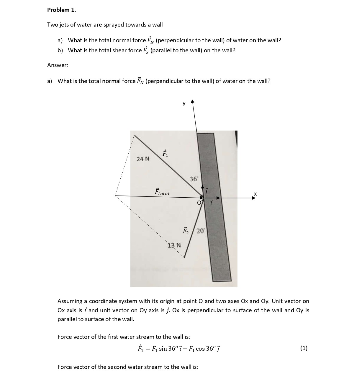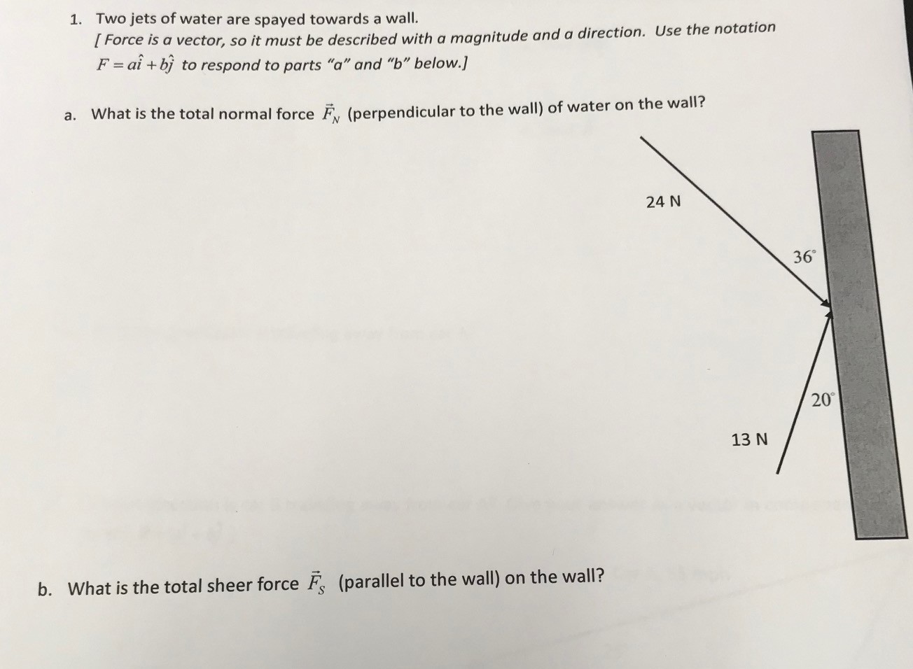 1. Two jets of water are spayed towards a wall. [ Force is a vecto...