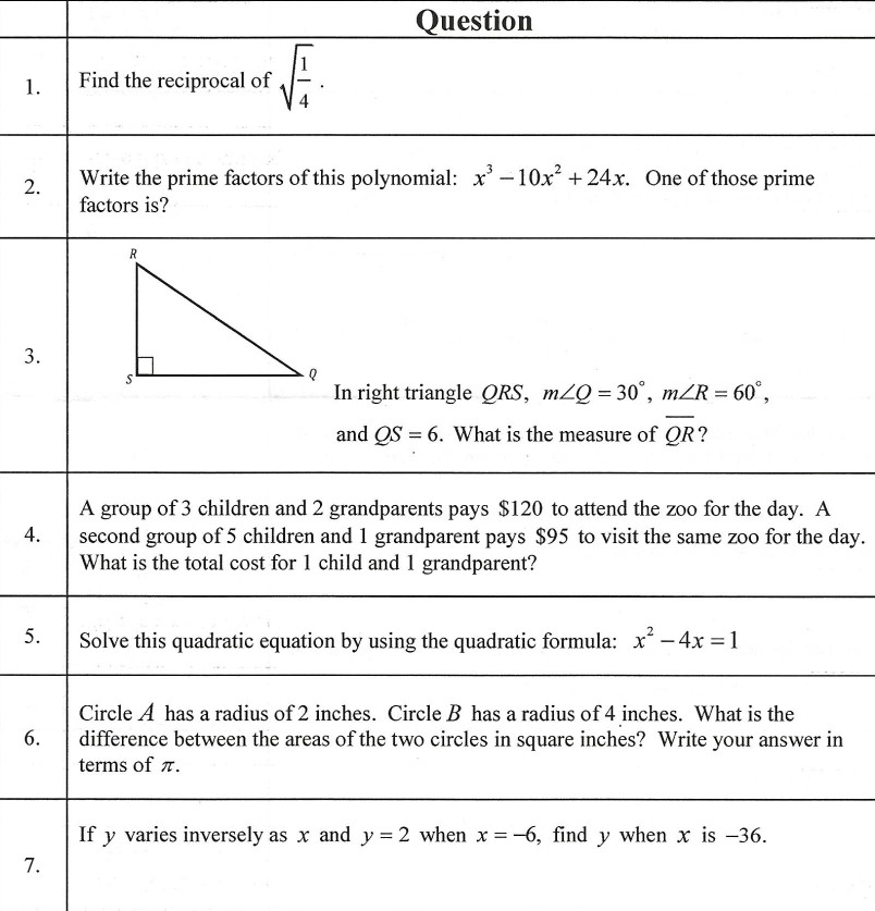 Question L-V 1 1. Find the reciprocal of 4 2. Write the prim...