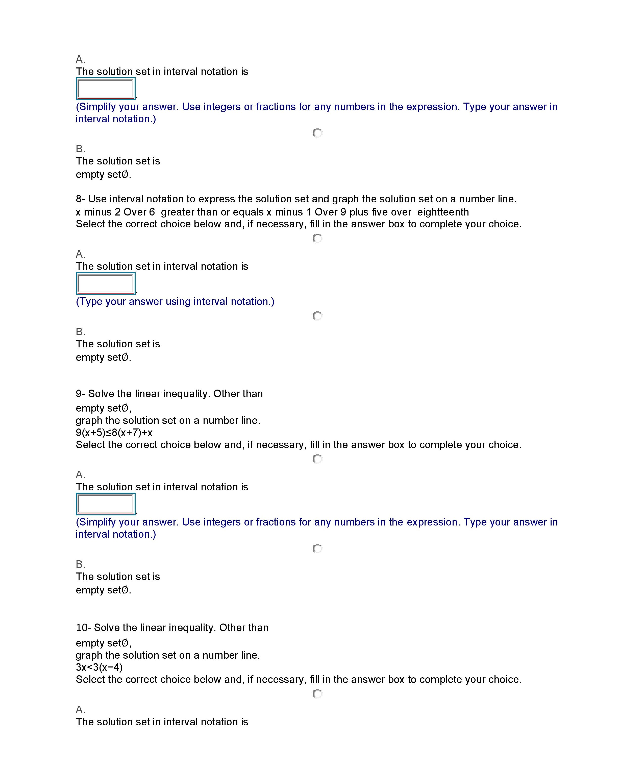 1. Solve the linear inequality. Other than empty set0, graph the ...