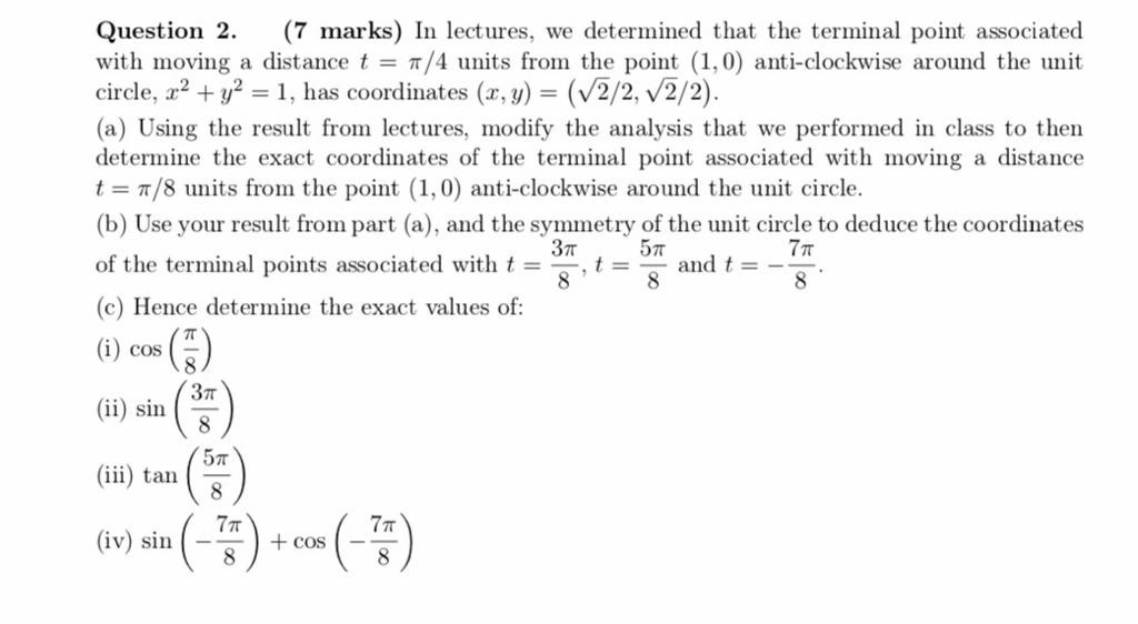 Question 2. (7 marks) In lectures, we determined that the terminal...