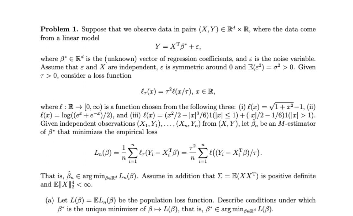 Problem 1. Suppose that we observe data in pairs (X,Y) ERd x R, whe...