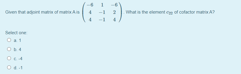 -6 1 -6 Given that adjoint matrix of matrix A is 4 -1 2 - Wh...