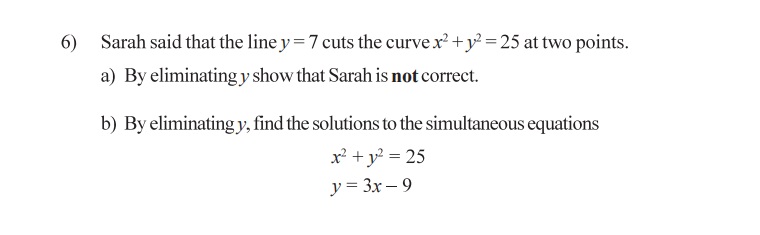 6) Sarah said that the line y = 7 cuts the curve x2 2+y== = 25 at t...