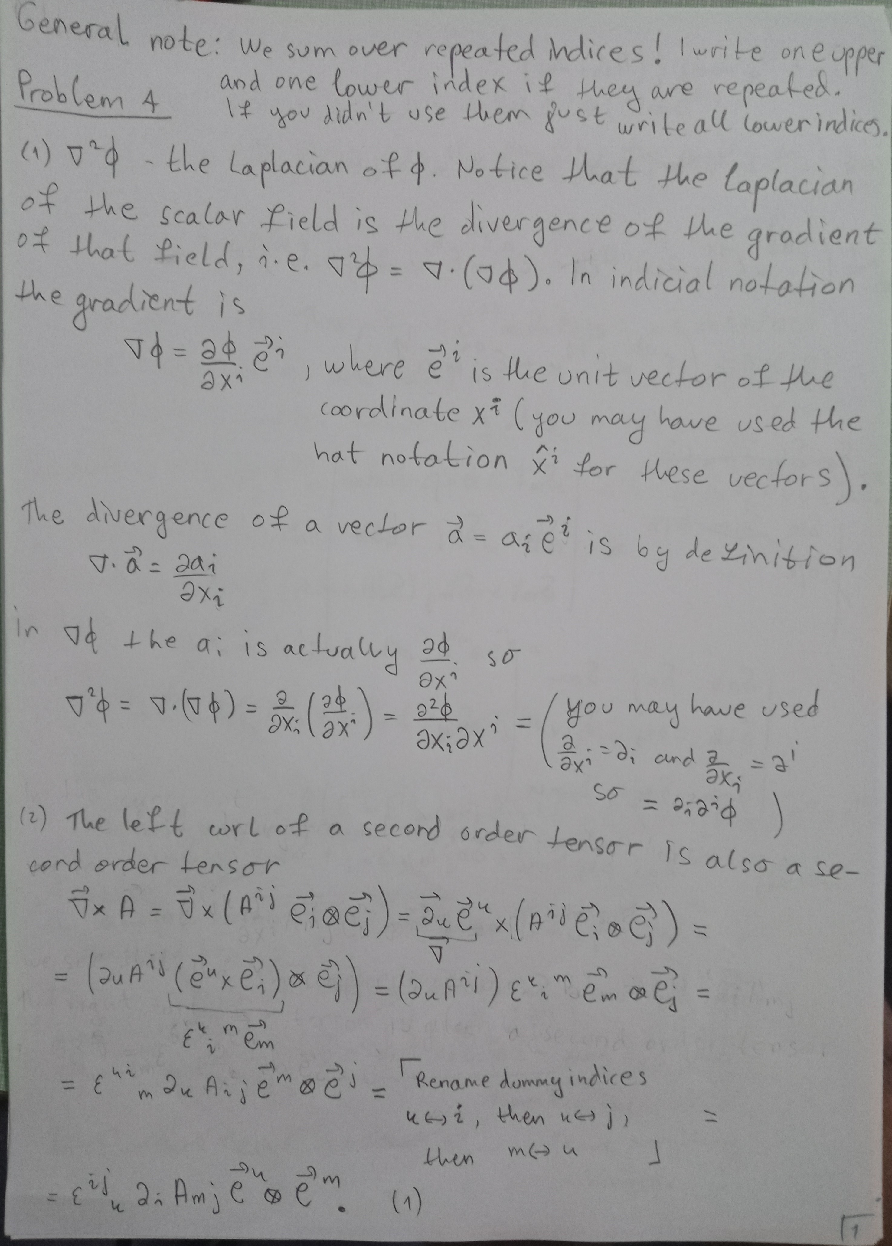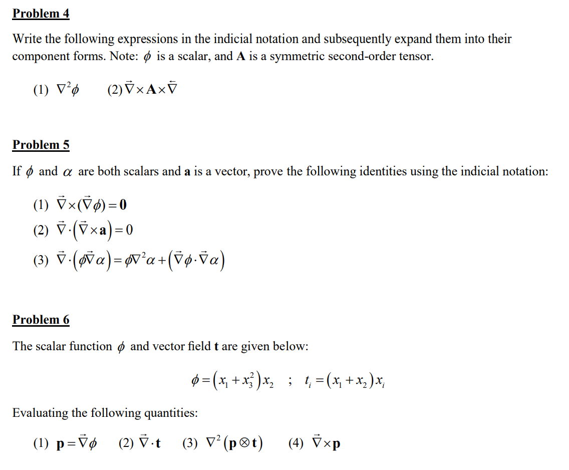 Problem 4 Write the following expressions in the indicial notation...