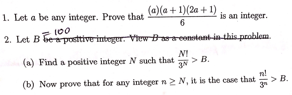 1. Let a be any integer. Prove that (a)(a+1)(2a+ 1) is integer. a...