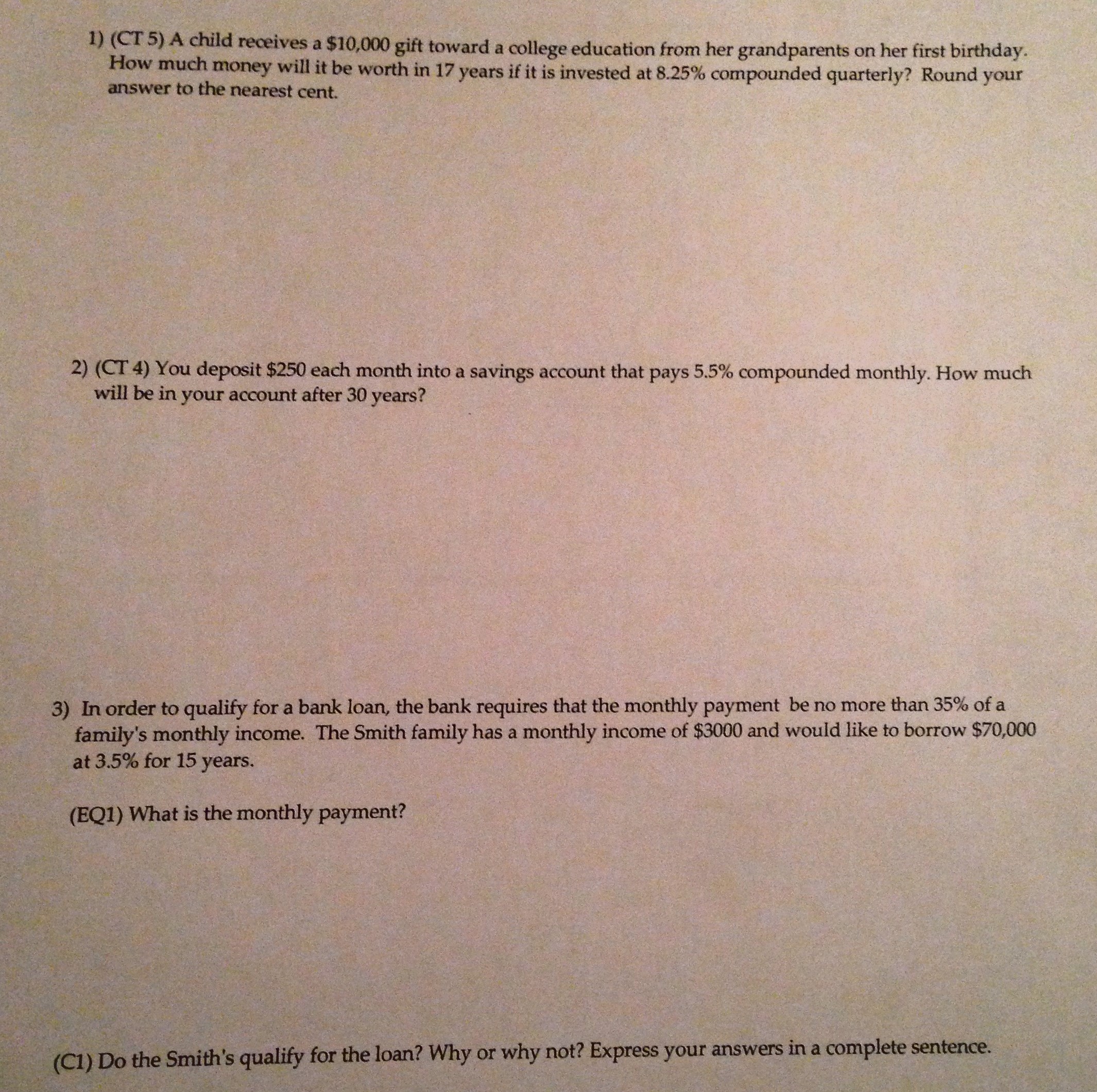 1) (CT 5) A child receives a $10,000 gift toward a college educatio...