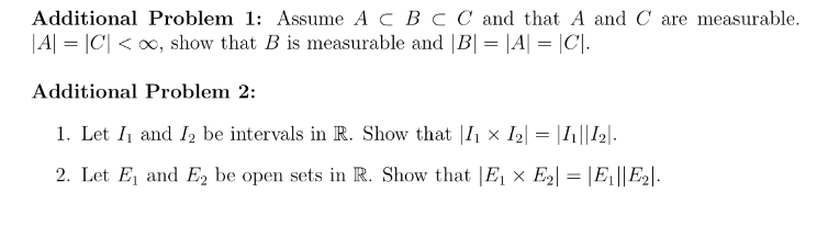 Additional Problem 1: Assume A C B C C and that A and C are measura...