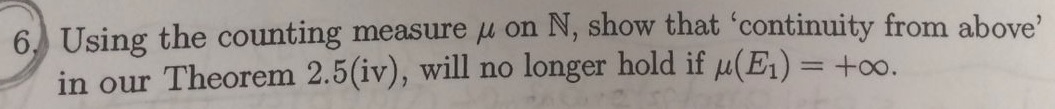Using the counting measure y on N, show that 'continuity from above...