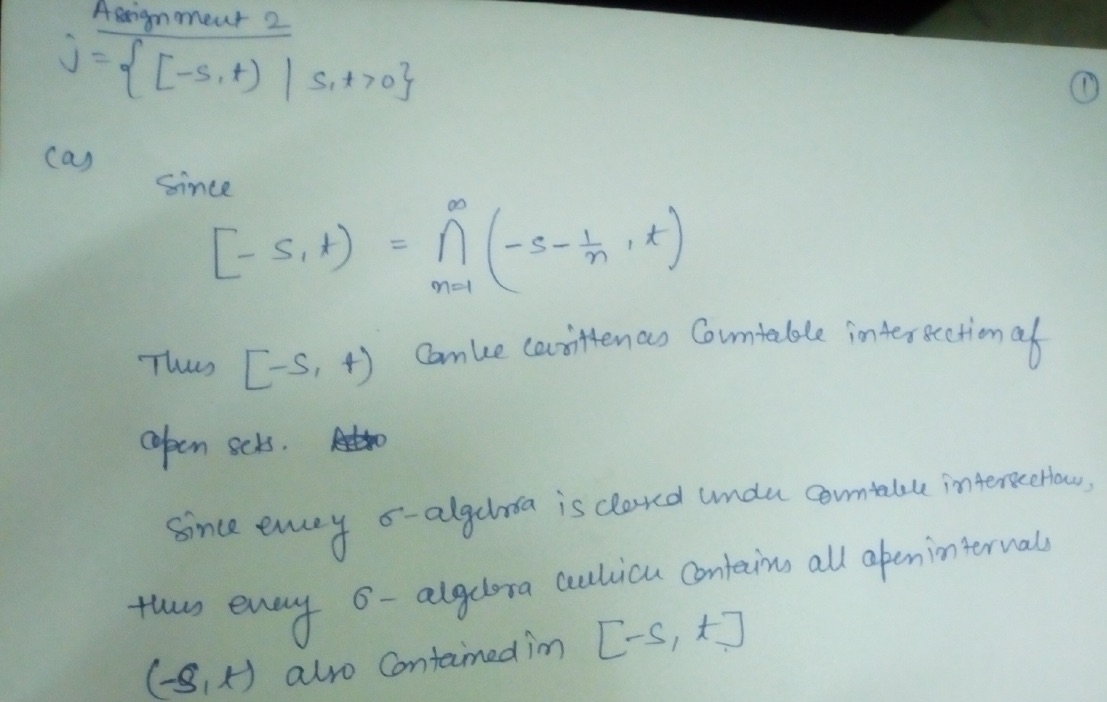 Assignment 2 Let J = { [-: - S, t) I S,t > o} a, Show that o(j...