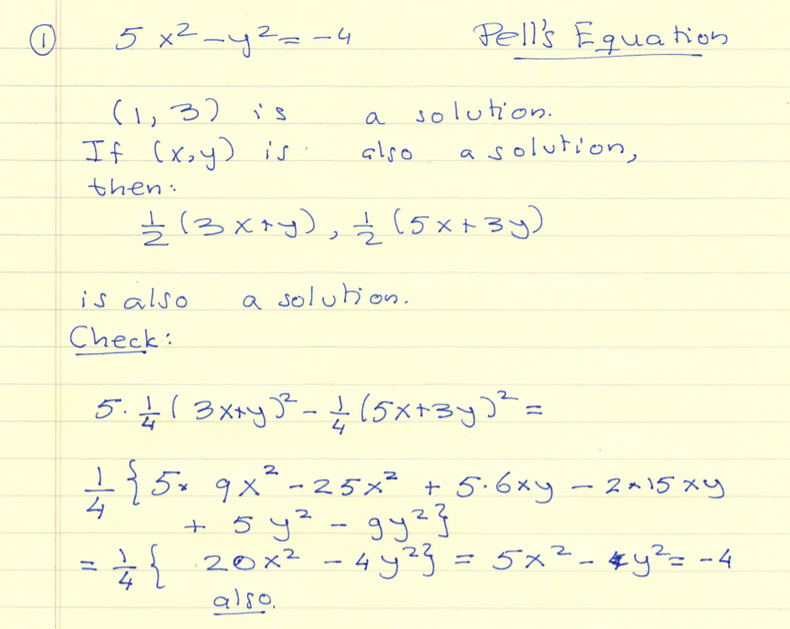 1. 5x² - y² = -4 The solution is (x,y) = (1,3), but how to get i...