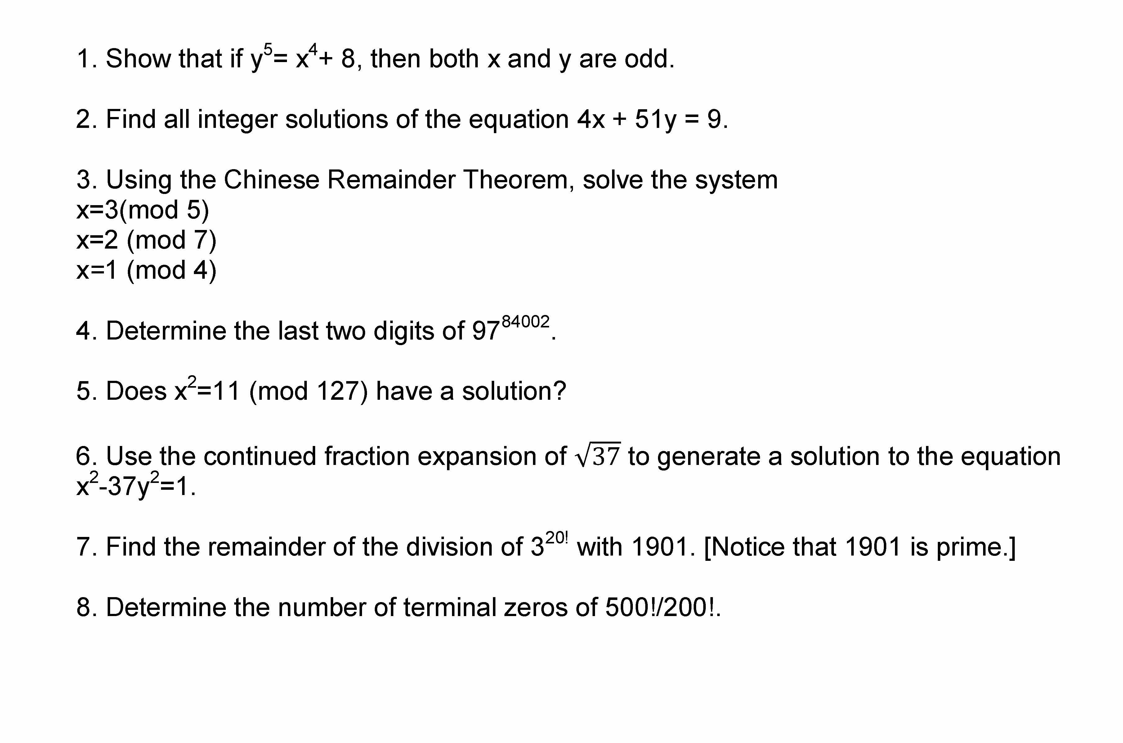 1. Show that if = 8, then both X and y are odd. 2. Find all intege...