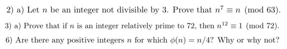 2) a) Let n be an integer not divisible by 3. Prove that n7 n (mod ...
