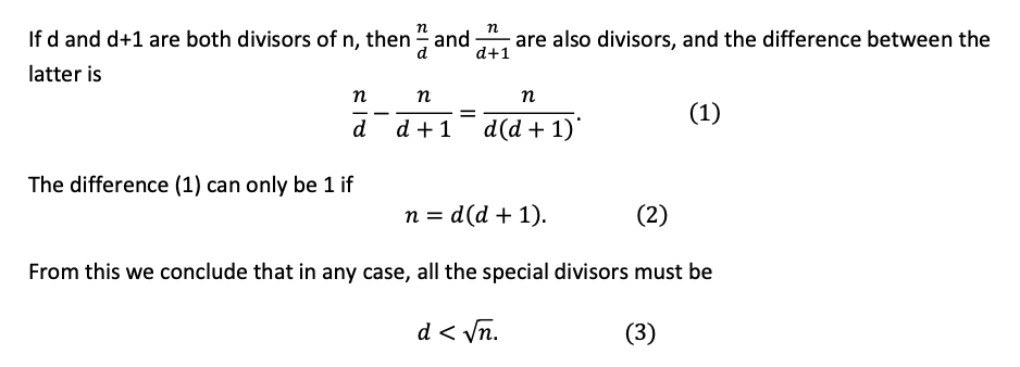 We say that a divisor d of n is 'special' if d+1 is also a divisor ...
