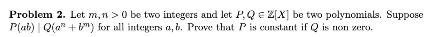 Problem 2. Let m, n > 0 be two integers and let P,Q € Z[X]...